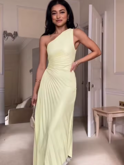 • Fein plissierter Stoff verleiht dem Kleid Leichtigkeit und Bewegung. Perfekt für elegante Anlässe mit einem Hauch moderner Raffinesse.
