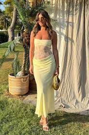 Ein Hauch von Eleganz und ein Gefühl von Leichtigkeit: Das Halo Maxi Dress formt eine natürliche, feminine Silhouette mit fließendem, leicht elastischem Stoff in zartem Zitronengelb. Feine Spitze an der Taille sorgt für einen modernen, sinnlichen Look. Mit verstellbaren Trägern, hohem Bund und verdecktem Verschluss – leicht, anschmiegsam und stilvoll.