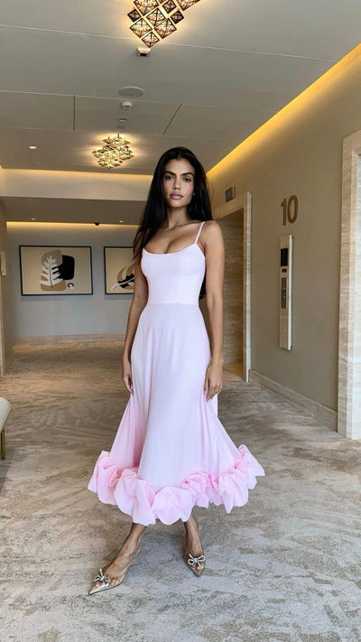 Die frischen Pastellfarben und der leichte, fließende Stoff machen dieses Kleid zum idealen Begleiter für warme Tage.- Mit dem zarten Ausschnitt und der femininen, ausgestellten Silhouette sorgt es für einen eleganten und zugleich entspannten Look.