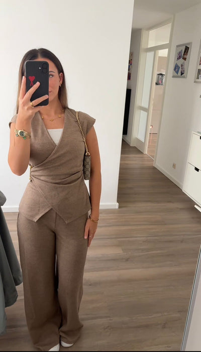 • Zweiteiliges Set bestehend aus cropped Shirt und ausgestellter Hose